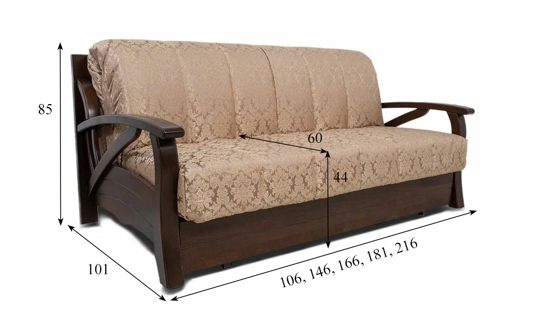 Габариты ДхГхВ: 106, 146, 166, 181, 216 х 101 х 85 см