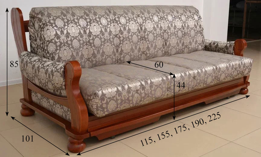 Габариты ДхГхВ: 115, 155, 175, 190, 225 х 101 х 85 см