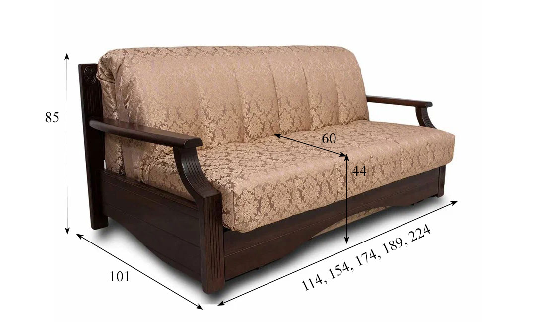 Габариты ДхГхВ: 114, 154, 174, 189, 224 х 101 х 85 см