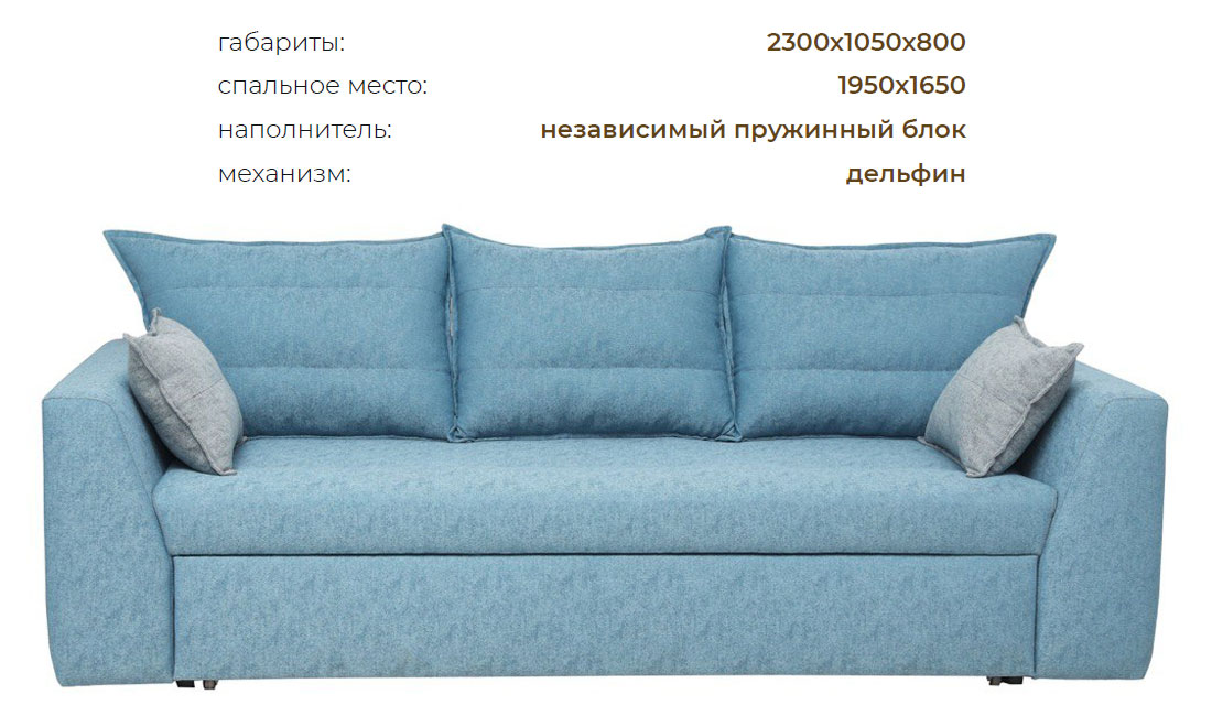 Диван, оснащенный механизмом дельфин, станет прекрасным выбором для тех, кто ждет от мебели надежности, простоты в использовании и комфорта.