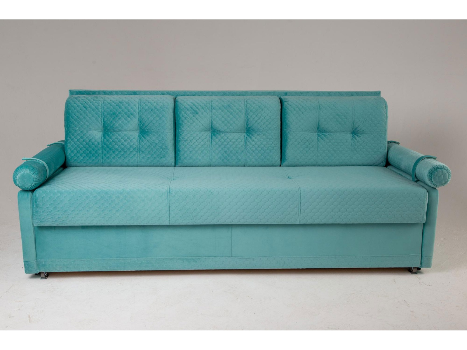 Механизм - еврокнижка с прямым доступом к ящику для белья под сидением не раскладывая диван. Удобный диван, который легко разложить в полноценное комфортное двухспальное место–кровать. Приспинные подушки из ППУ вмонтированы прямо в спинку дивана, что удобно при посадке, а так же не доставляет неудобств при раскладывании дивана, нет необходимости искать дополнительные места для хранения подушек. Подлокотники заменяют плотные удобные боковые валики из ППУ, которые крепятся ремешками на сиденье. Их всегда можно легко убрать или оставить.