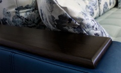 Модель поставляется полностью разборная (подлокотники, малая спинка, короб с сидением, спинка). Декор на подлокотниках выполнен из плитного термостойкого материала. Цвет декора на выбор: венге, беленый дуб. Возможно исполнение модели в мебельных тканях и искусственной коже.