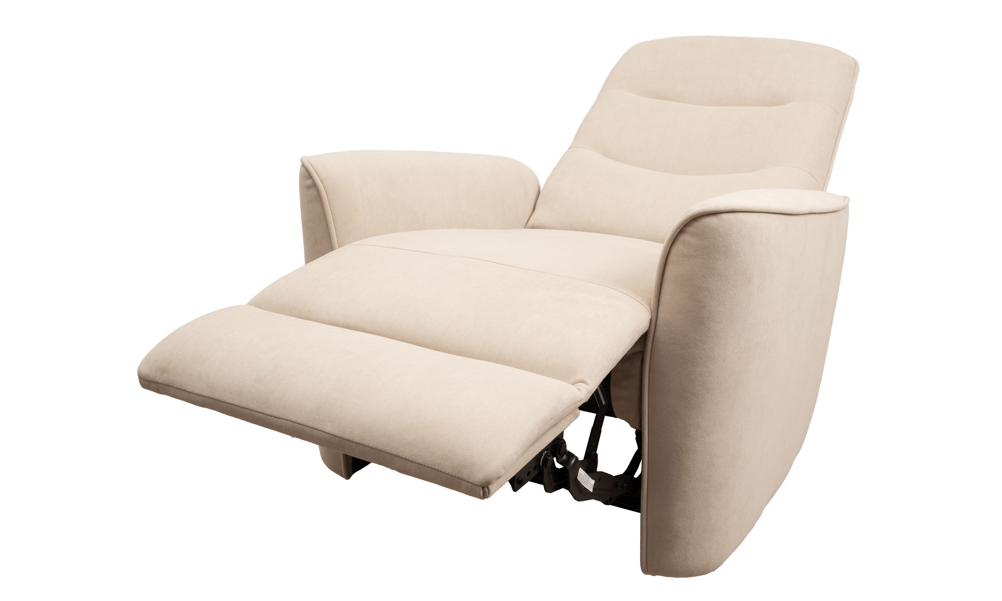 Для приведения в действие механического реклайнера (угол наклона в положение лёжа до 160 градусов) человеку, сидящему на кресле, необходимо потянуть за рычаг-ручку расположенную на боковой стороне кресла и тогда подставка для ног поднимется вверх, а спинка кресла под давлением вашего тела начнет опускаться назад до тех пор, пока Вы давите на нее спиной. Как только давление на спинку кресла прекращается она фиксируется в этом положении. Спинка кресла не имеет каких-либо заранее подготовленных углов наклона, которые нельзя изменить. Каждый раз Вы выбираете угол наклона самостоятельно и именно такой который нравится Вам именно сейчас. Чтобы вернуть кресло с механическим реклайнером в исходное состояние, необходимо немножко приподнявшись на кресле, надавить ногами на подставку для ног (до щелчка) и после этого подставка для ног уберется, а спинка кресла реклайнер поднимется (вместе с Вами) в исходное вертикальное положение. Габариты кресла Ш75 х Г83 х В104 см. Длина в разложенном состоянии 168 см. Габариты посадочной части Ш 50 х Г 50 х В 50 см. Максимальная нагрузка 120 кг.