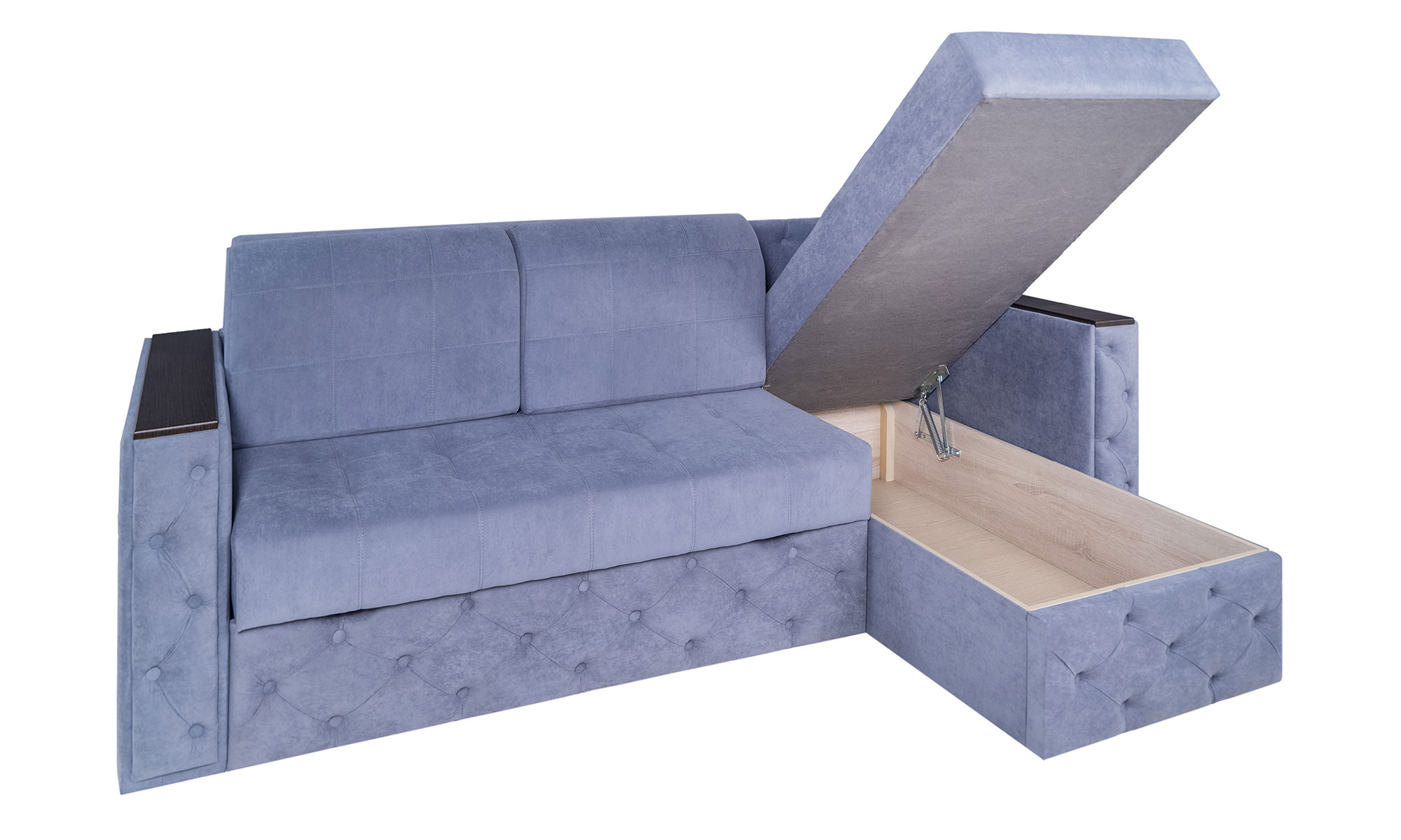Стильный L-образный диван в универсальном оттенке. Обивка с бархатистой фактурой, аккуратная декоративная прострочка и каретная стяжка придают модели дорогой вид. Три широкие подушки-спинки, глубокое сиденье и шезлонг справа — удобно