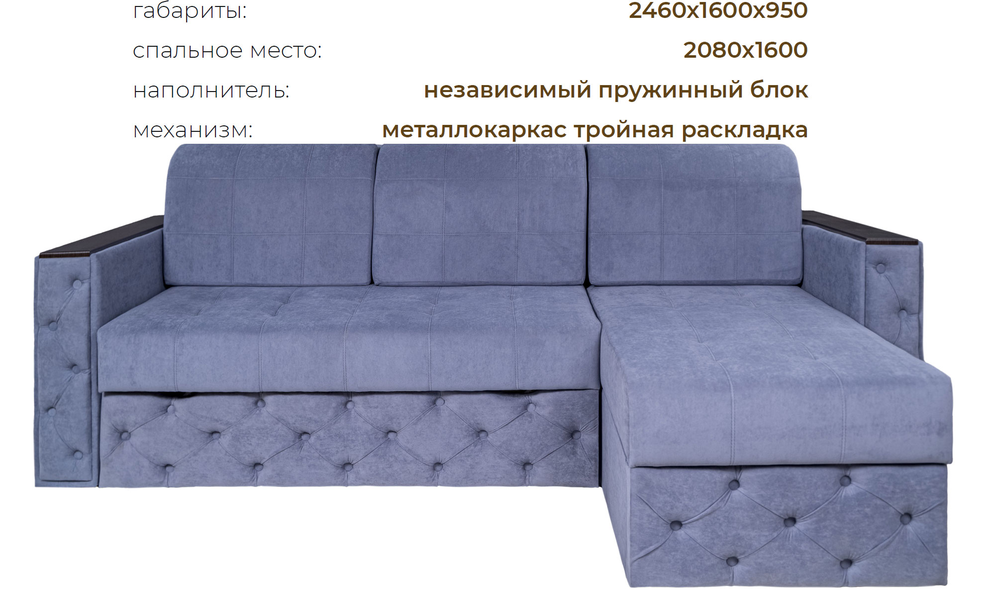 для отдыха и просмотра фильмов. Подлокотники с деревянными накладками — практично, можно ставить напитки и мелочи.