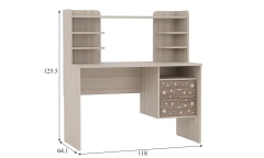 Конструкция включает тумбу с открытой полкой и 2-я выдвижными ящиками. Имеется надстройка с полками для хранения. Сборка универсальная, на любую сторону.