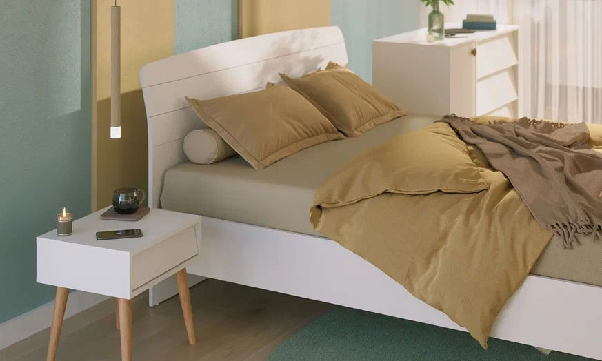 Модель кровати 4-22901 с изогнутым изголовьем и встроенным основанием с ламелями, со спальным местом 1600х2000 мм. Основание - деревянные ламели. Максимальная нагрузка на 1 спальное место 90 кг. Кровать установлена на высокие ножки из массива Бука. Матрас докупается отдельно.