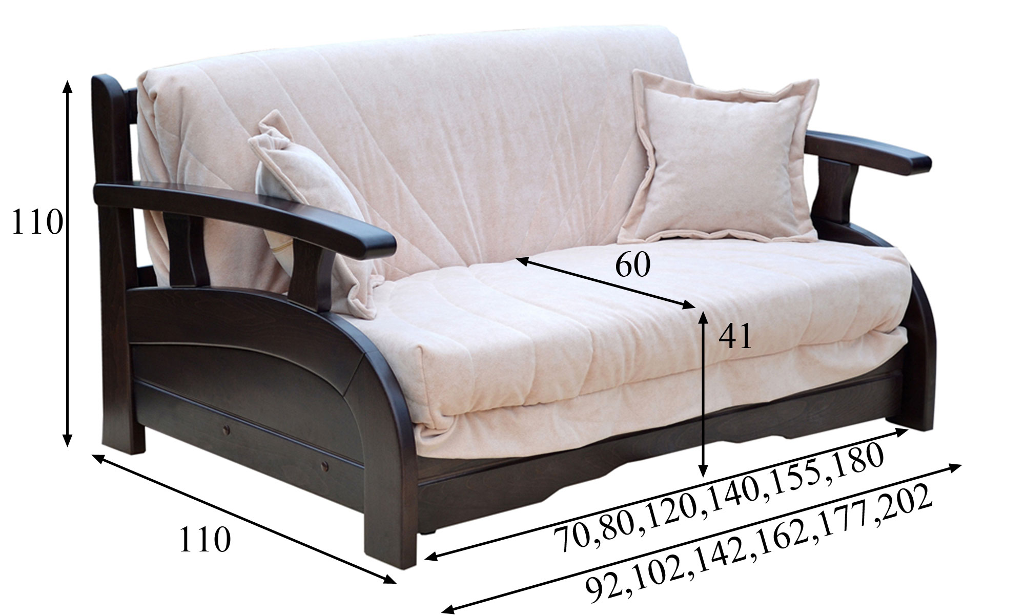 Габариты ДхГхВ: 92, 102, 142, 162, 177, 202 х 110 х 85 см