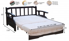 Особенности: возможен выбор длины дивана, съемный чехол спального места, бельевой ящик из ЛДСП, ортопедическая решетка, подлокотники и спинка – массив бука