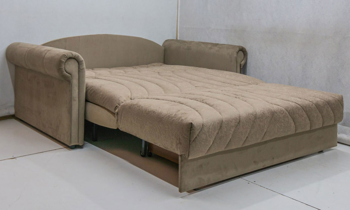 Модель разработана специально для любителей классического стиля в интерьере. Диван обладает всеми преимуществами моделей с механизмом трансформации аккордеон (ровное спальное место без стыков, металлический каркас, усиленный основанием из кокосовой койры и ящик для белья). В каркас встроен специальный механизм доводчик, чтобы трансформация спального места была максимально легкой. Широкий спектр размеров спального места от 75 до 205 см с шагом 10 см). В основании сиденья используются пружинные змейки, в остальных сегментах - металлическая сетка. В наполнении матраса используются независимые пружины НПБ 80 (10мм кокос +80мм НПБ + ППУ 30мм + Периотек 300г/м2). В комплект входит 2 подушки 40х40 и ящик для белья кроме размеров 75, 85 и 95 см). Для размеров от 170 и далее в конструкцию встроена дополнительная опора по центру спального места, которая "выдвигается" при разложении дивана. Глубина дивана в разложенном состоянии со спинкой 208 см. Выбор ткани всегда остаётся на усмотрение клиента.