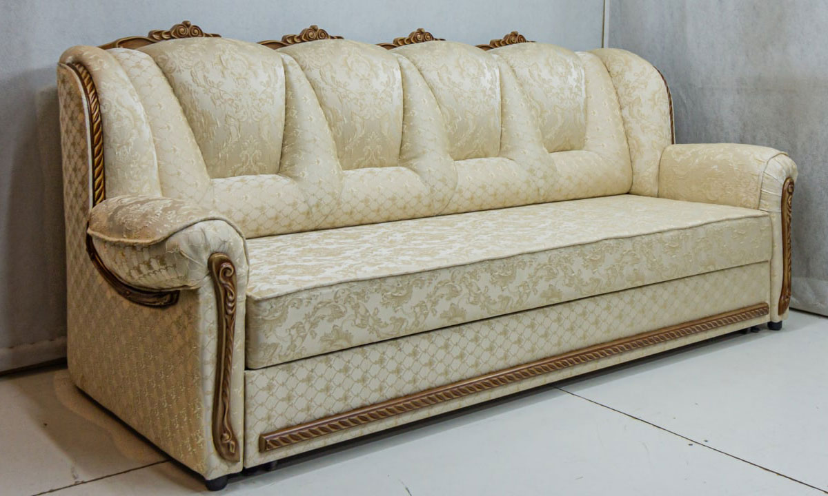 Модель Каролина 195ТТ выполнена по всем канонам жанра классика. Матрас ортопедический - независимый пружинный блок (НПБ 80мм + ППУ 30мм + Синтепон 100г/м2) делает посадку удобной и комфортной. В основании сиденья используется мебельный щит (рамка из бруса + фанера). Механизм трансформации одним движением превращает диван в удобную и просторную кровать. Каркасная часть дивана изготовлена из массива сосны. Длина сидения 200 см позволяет использовать его для сна даже не раскрывая диван полностью. Покупателю на выбор предлагается 6 вариантов декоров. Модель дивана можно доукомплектовать креслом или креслом-кроватью. Диван полностью разборный, это позволяет без труда занести мебель практически в любое помещение. Комплектуется двумя квадратными подушками-думками. Выбор ткани всегда остаётся на усмотрение клиента. Глубина дивана в разложенном состоянии со спинкой 240 см. Высота подлокотников 57 см.