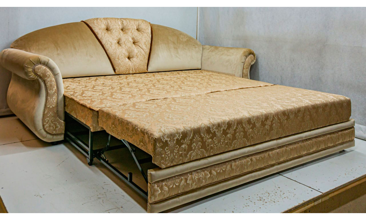 Диван 195ТТ выполнен в изящном классическом стиле, отличается изысканной формой и может стать украшением любой гостиной. Сочетание разных фактур ткани (жаккард, велюр, бархат), нежная бахрома, декоративные шнуры и кисти, придают этому дивану особый и неповторимый шарм. Матрас ортопедический - независимый пружинный блок (НПБ 80мм + ППУ 30мм + Синтепон 100г/м2) делает посадку удобной и комфортной. В основании сиденья используется мебельный щит (рамка из бруса + фанера). Механизм трансформации "высоковыкатной" одним движением превращает диван в просторную кровать, что позволяет использовать мебель в качестве полноценной кровати для ежедневного сна. Каркасная часть дивана изготовлена из массива сосны. Длина сидения 200 см позволяет использовать его для сна даже не раскрывая диван полностью. Модель дивана можно доукомплектовать креслом. Диван полностью разборный, это позволяет без труда занести мебель практически в любое помещение. Комплектуется двумя квадратными и двумя круглыми подушками-думками. Выбор обивочной ткани всегда остаётся на усмотрение покупателя. Глубина дивана в разложенном состоянии со спинкой 240 см.