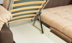 Подлокотники мягкие шириной 23 см. Угол может быть слева или справа (обговаривается по телефону, при подтверждении заказа). Металлокаркас на ортопедических березовых латах из гнутоклееной березы. Матрас на ППУ повышенной эластичности ИЛИ на независимом пружинном блоке (+5000 руб). Съемный чехол. Металлический каркас в комбинации с ортопедическими латами из гнутоклееной березы. Чехол простеган на периотек в виде КВАДРАТОВ. Комплектуется бельевым ящиком. Глубина дивана в разложенном виде от стены 214 см. Длина оттоманки возможна в двух вариантах исполнения:170 (стандарт) и 200 см. Ширина оттоманки 80 см. Подъем оттоманки осуществляется при помощи газовых лифтов. Возможен вариант исполнения углового дивана с любыми подлокотниками серии диванов Вектор.