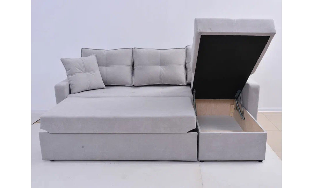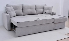 Угловой диван раскладной Эльф это практичная и удобная модель, оснащена надежным каркасом и механизмом трансформации «дельфин», который обеспечивает плавное раскладывание и создает просторное спальное место 140 х 200 см. Для ежедневного использования предлагается матрас матрас с ортопедическим эффектом на базе независимых пружин блоке. Высота матраса 10 см. Конструкция каркаса разборная, что обеспечивает занос в дверной проём 80 см.