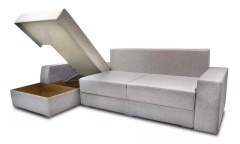 Угловой диван Серебро (Сильвер) поможет создать зону максимального отдыха и одновременно украсить пространство. Сидение с механизмом трансформации "пантограф". Под сидением дивана расположен ящики для белья. Вместительная оттоманка может служить модулем для хранения вещей и постельных принадлежностей. В разложенном виде диван заменит двуспальную кровать, размер спального места 240x160 см. В основании сиденья используется мебельный щит (рамка из бруса + фанера). Матрас независимый пружинный блок (НПБ 80мм + ППУ 40мм). Чехлы на подушках съемные. Диван полностью разборный, это позволяет без труда занести мебель практически в любое помещение. Подушки входят в стоимость. Выбор ткани всегда остаётся на усмотрение клиента. Модули на фото: 1Д + 1ОТ + 2П.