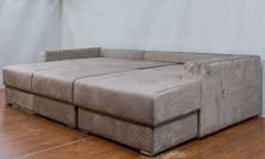 Угловой диван Серебро (Сильвер) поможет создать зону максимального отдыха и одновременно украсить пространство. Сидение с механизмом трансформации "пантограф". Под сидением дивана расположен ящики для белья. Вместительная оттоманка может служить модулем для хранения вещей и постельных принадлежностей. В разложенном виде диван заменит двуспальную кровать, размер спального места 240x160 см. В основании сиденья используется мебельный щит (рамка из бруса + фанера). Матрас независимый пружинный блок (НПБ 80мм + ППУ 40мм). Чехлы на подушках съемные. Диван полностью разборный, это позволяет без труда занести мебель практически в любое помещение. Подушки входят в стоимость. Выбор ткани всегда остаётся на усмотрение клиента. Высота подлокотников 60 см. Модули на фото: 1Д + 1ОТ + 2П.