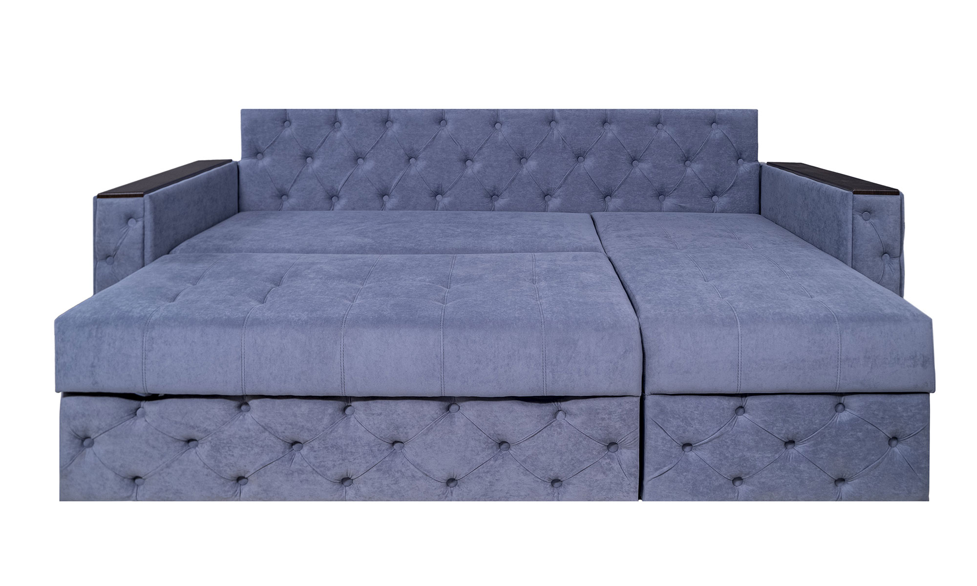 для отдыха и просмотра фильмов. Подлокотники с деревянными накладками — практично, можно ставить напитки и мелочи.