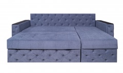 Стильный L-образный диван в универсальном оттенке. Обивка с бархатистой фактурой, аккуратная декоративная прострочка и каретная стяжка придают модели дорогой вид. Три широкие подушки-спинки, глубокое сиденье и шезлонг справа — удобно