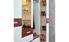 Высокая и узкая обувница - уникальное предложение на рынке мебели. Узкая обувница поможет аккуратной хозяюшке разложить до 18 пар обуви, а также средства по уходу за ней. Шкаф выдвигается без усилий благодаря шариковым направляющим полного выдвижения и выкатным роликам. Пространство внутри шкафа вентилируется с помощью небольших отверстий на крышке и дне выдвижной части шкафа. Предусмотрена право- и левосторонняя сборка модуля.