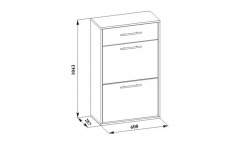 Тумба для обуви шириной 600 мм. Верхний ящик выдвижной. Средняя дверь оснащена откидывающимся механизмом со специальными полками для размещения обуви. За нижней дверью также располагается отсек для хранения обуви. Поставляется в разобранном виде. Упаковано в гофротару вместе с необходимой фурнитурой для сборки и подробной инструкцией.