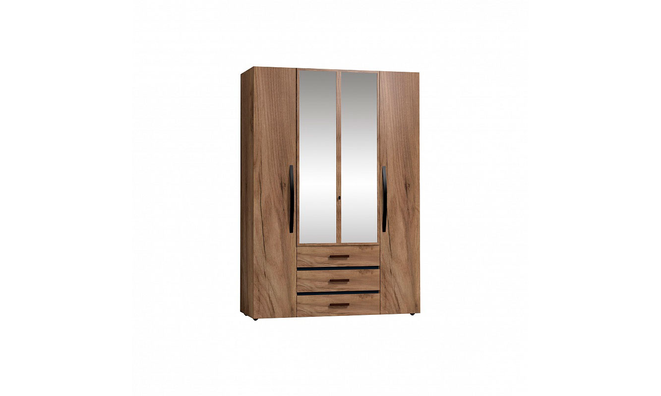Вместительный распашной шкаф красивого древесного оттенка с 2-мя зеркальными фасадами прекрасно подойдет в небольшую спальню. Функциональное наполнение шкафа разделено на две симметричные половины, что очень удобно для пользования и зонирования гардероба всех членов семьи. За глухими фасадами скрываются отделения с 4 полочками, регулируемых по высоте, что делает хранение одежды и аксессуаров крайне удобным. Зеркальные фасады шкафа обрамлены вставками из ЛДСП. Изнутри зеркало покрыто специальной защитной пленкой, которая предотвратит падение осколков, если оно разобьется. Элегантная ручка-петля позволит открывать дверцу, не прикасаясь к зеркальному полотну, а, значит, его не придется часто протирать. Вторая зеркальная дверца открывается за свес. Внутри шкафа закреплена стационарная штанга (777 мм), которая выдержит нагрузку в 40 кг. Особенно деликатные вещи, постельные принадлежности и другие предметы быта помогут хранить три выкатных ящика с глубиной 40 см. Ящики оснащены шариковыми направляющими полного выдвижения, что обеспечит их высокую прочность и абсолютную бесшумность при эксплуатации.