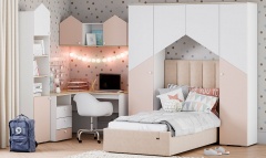 Особенности стиля детской «Банни» - это:  светлые, спокойные оттенки в единой гамме. Скругленные ручки-кнопки  не имеют острых граней. Ящики для хранения белья позволят навести порядок в комнате и расположить вещи. Скандинавская стилистика не любит загромождения мебелью. Только функциональность и практичность. Если правильно спланировать интерьер, в детской будет много места для хранения и пространства для игр. Фасады выполнены из МДФ с покрытием пленкой ПВХ.