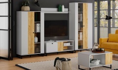 "БРУНО" - современный дизайн с характером. Цвет платиново-серого и золотого дуба подчеркнут контрастными элементами - стеклом в витринах и черными ручками,металлическими черными опорами. Модульная колекция, состоящая из отдельных элементов, призвана максимально продуктивно использовать пространство и придать ему стильный и современный вид. Контрастные текстуры — эффектное сочетание двух абсолютно разных цветов, которые при этом гармонично смотрятся вместе.